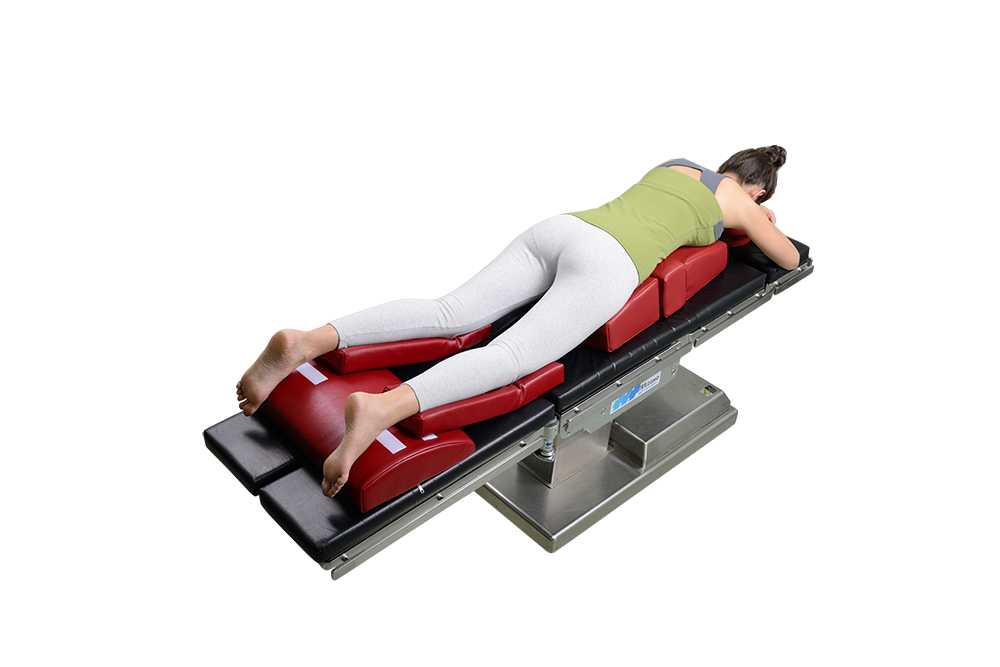 5、体位摆放完成,要及时复查,确保患者安全使用俯卧位手术午夜成人视频时要先把俯卧位整套的产品检查完毕,体位包括:高碗头圈、可调节俯卧位垫、改良腿垫等,把这些俯卧位手术午夜成人视频的产品摆放在手术床上,再根据患者需要动手术体位躺好。